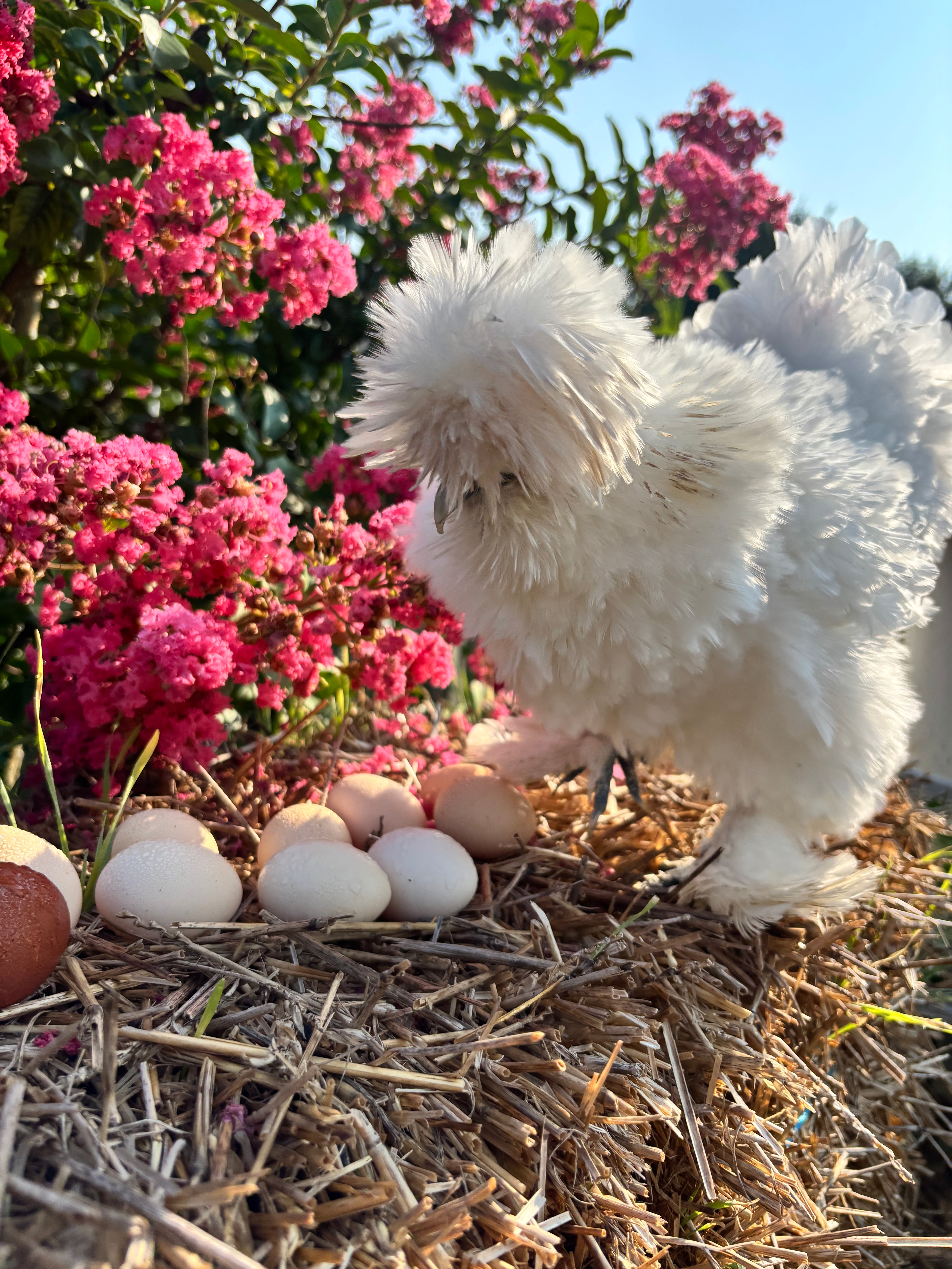 Adorned with fluffy crests, perfectly rounded bodies, and the sweetest personalities, our rare Mottled Silkies are pure backyard elegance. They lay small, cream-colored eggs that are as delightful as they are unique.
